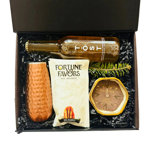 Delight in the perfect combination of sweet and savory with our Nutty and Nice gift box. Featuring a rich artisan chocolate bar, crunchy cashews, and indulgent candied pecans, this box is a celebration of festive flavors. Each treat is thoughtfully selected to create a harmonious balance of textures and tastes, making it an irresistible choice for holiday gifting. Perfect for snacking by the fire or sharing with loved ones, a great team, employee gift idea.