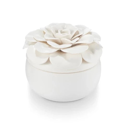 Ceramic flower candle was designed to layer life and beauty into the Essentials collection. Each petal has been hand placed to create flowers that look as though they've just bloomed.