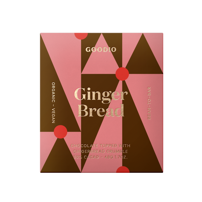 We sprinkled the best parts of gingerbread boy on to this fine craft chocolate. Yummy Holidays! Vegan, gluten-free, soy-free, non-GMO, no additives. Hand made in Helsinki, Finland.
