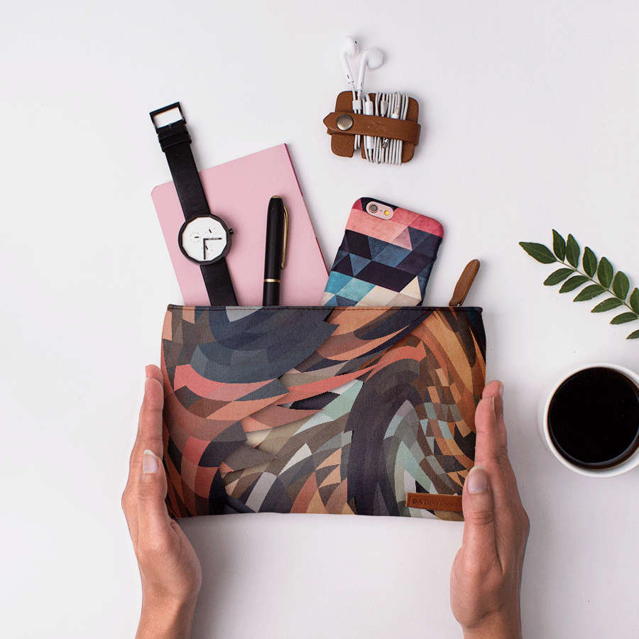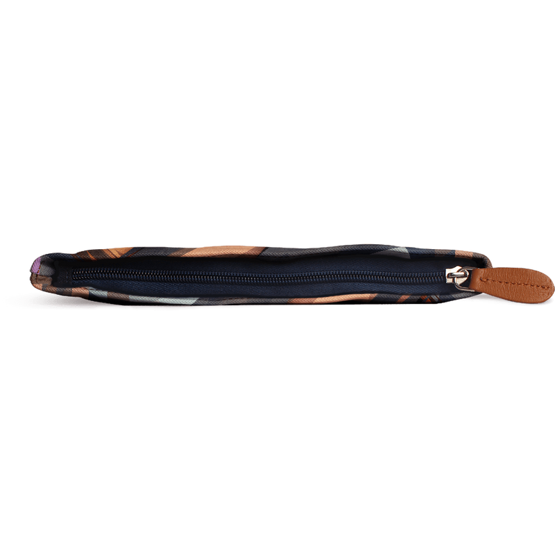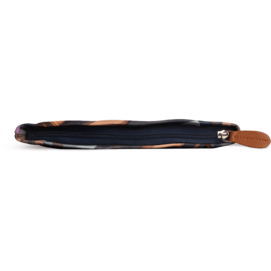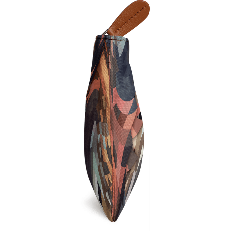 Designer carry-all pouch made out of poly-cotton fabric with a photo quality design. Features real leather details, zippered opening, and a soft poly-cotton lining.