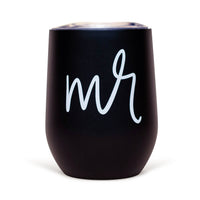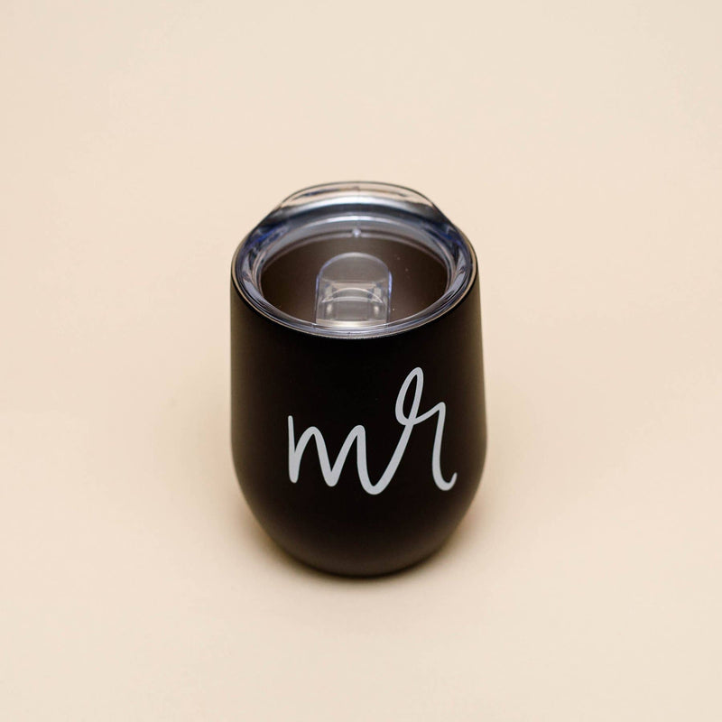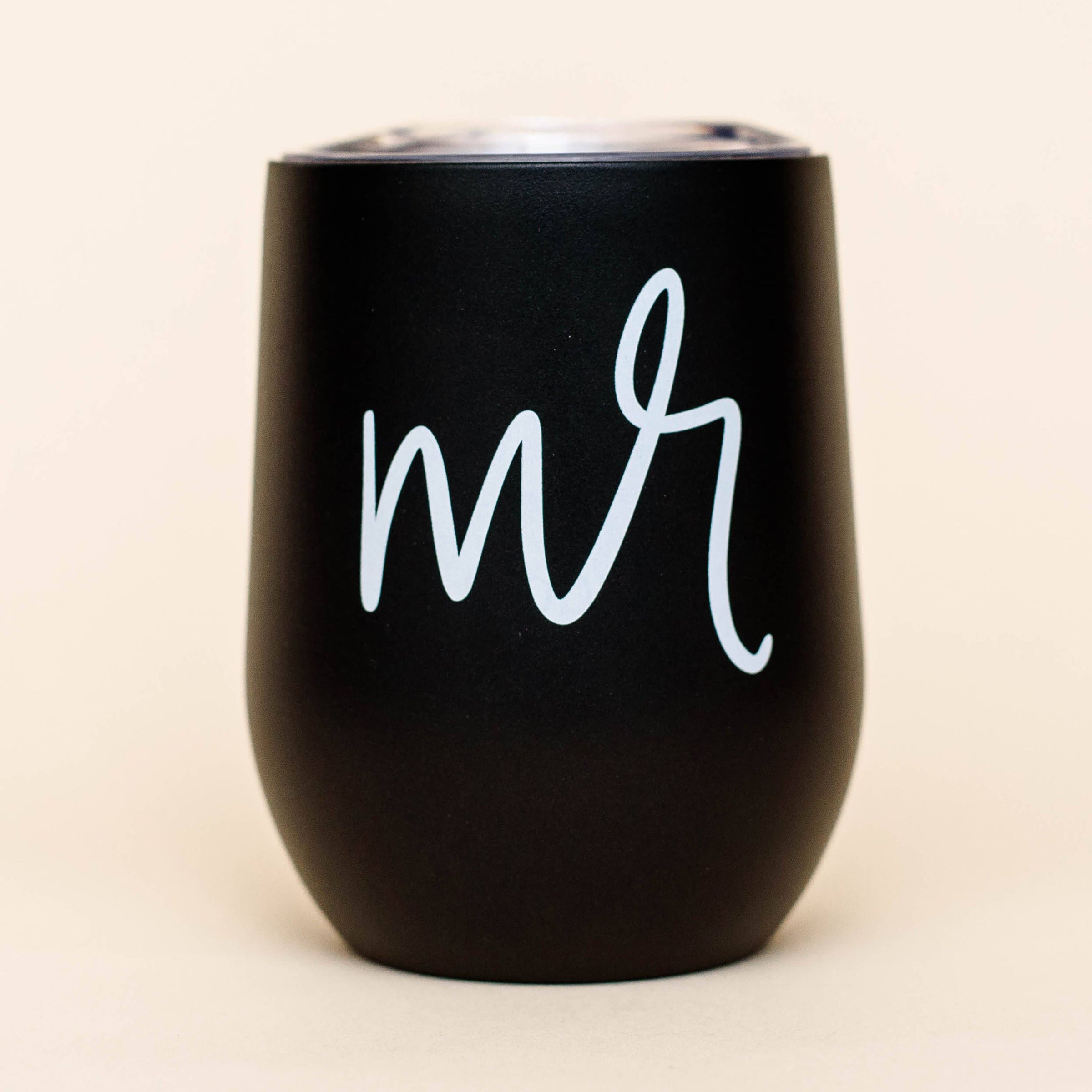 Every newly engaged or married guy needs this wine tumbler! Show the world you're married and sip your wine out of our Mr Stainless Steel Wine Tumbler. Makes a great gift for your brother or best bud who has just become a groom! Details: + 12oz Stainless Steel Tumbler With Lid + Size : 3.5" x 4.5" + BPA, Lead + Phthalate Free + Hand Lettered Design: Mr. + Design on Front, Blank on Back + Hand Wash Only + Do Not Microwave + Wash Before Use + Avoid Abrasive Clothes When Cleaning + Use Caution With Hot Liquids + Do Not Use to Store Milk, Baby Food or Carbonated Drinks + Keeps Liquids Cold 8+ Hours + Keeps Liquids Cold Hot 7+ Hours + Black Exterior, Stainless Interior + White Lettering + Clear Lid With Slide Closure + Designed In The USA.