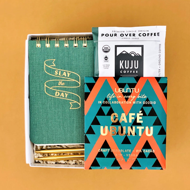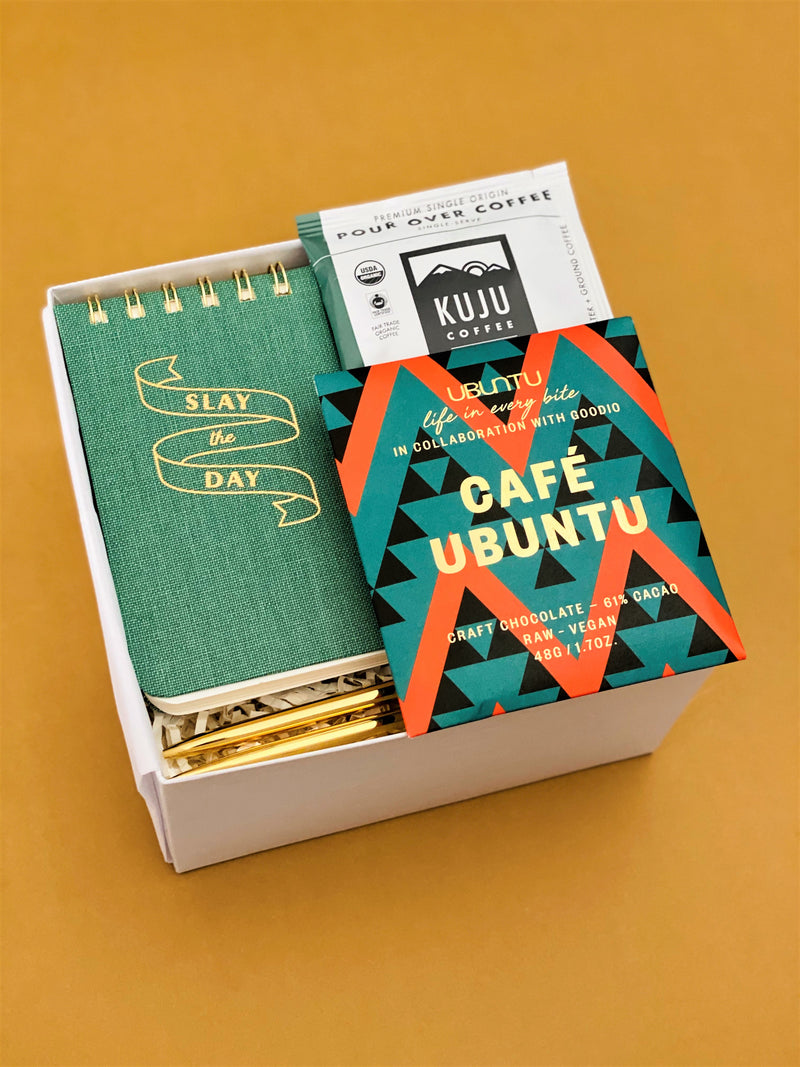 Here's a gift for your go-getters and workaholics so they can have a delicious cup of coffee, an afternoon sugar snack and a notebook to jot down all of their brilliant ideas in. This makes a great present for a coworker, boss or entrepreneur in your life.
