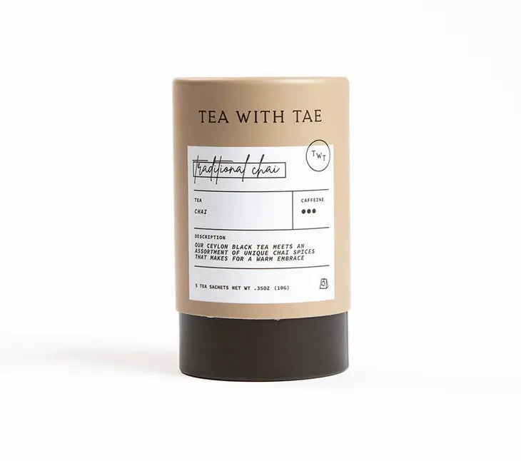 Description: Our Traditional Chai is simply blended with premium Ceylon black tea leaves and unique spices like cinnamon, cardamom, ginger, and cloves that makes for a warm embrace. Each sip is reminiscent of the rich culture and heritage of India, where delicious and authentic chai is more than just a drink, but a way of life. Get a boost of energy with every sip, and feel uplifted by the riveting aroma of the complex chai spices.
